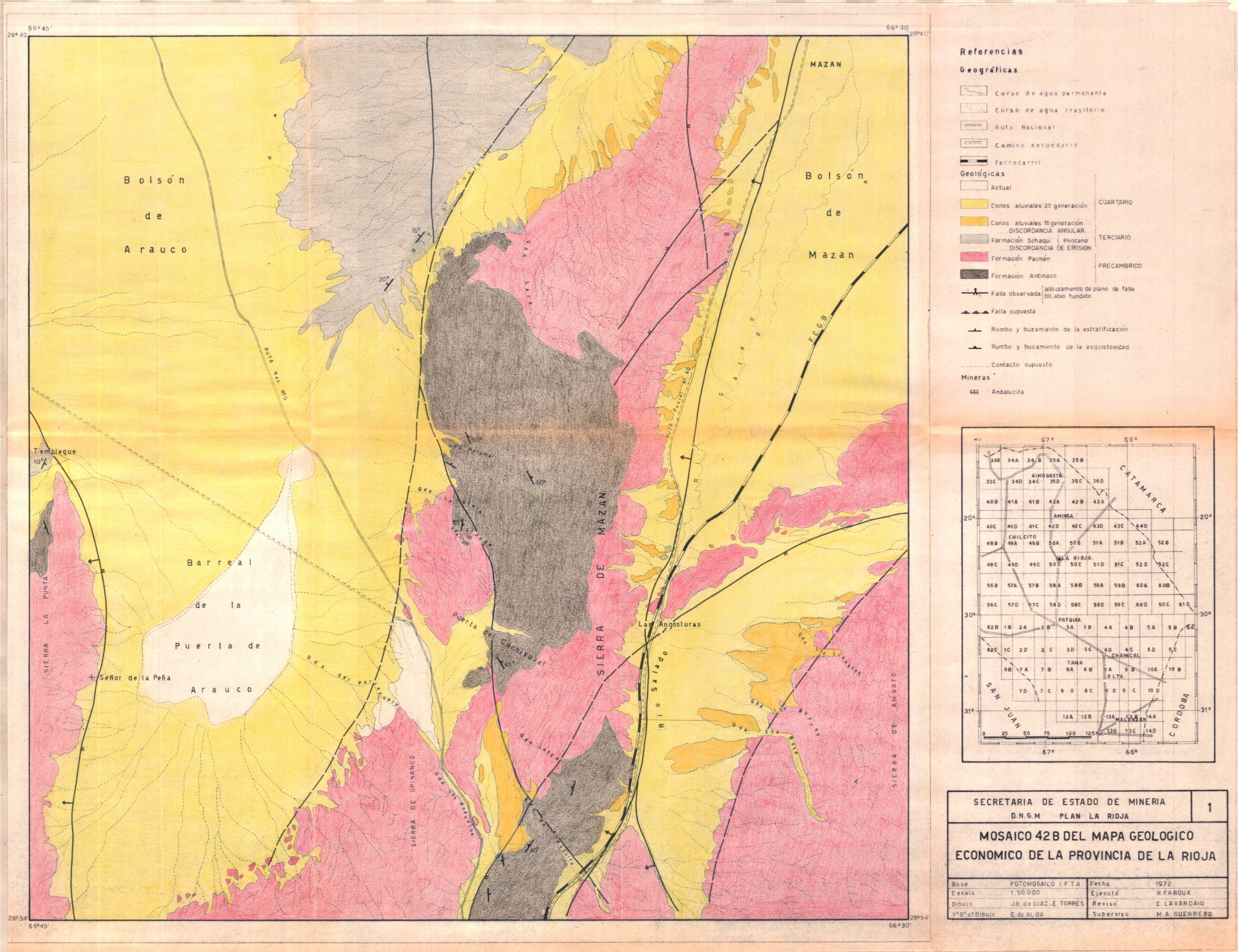Argentina. Dirección Nacional de Geología y Minería. Plan La Rioja, 1970. Descripción del Mosaico 42B del Mapa Geológico Económico de la Provincia de La Rioja. La Rioja, Dirección Nacional de Geología y Minería. Plan La Rioja (ex Delegación Plan Cordillera Norte)