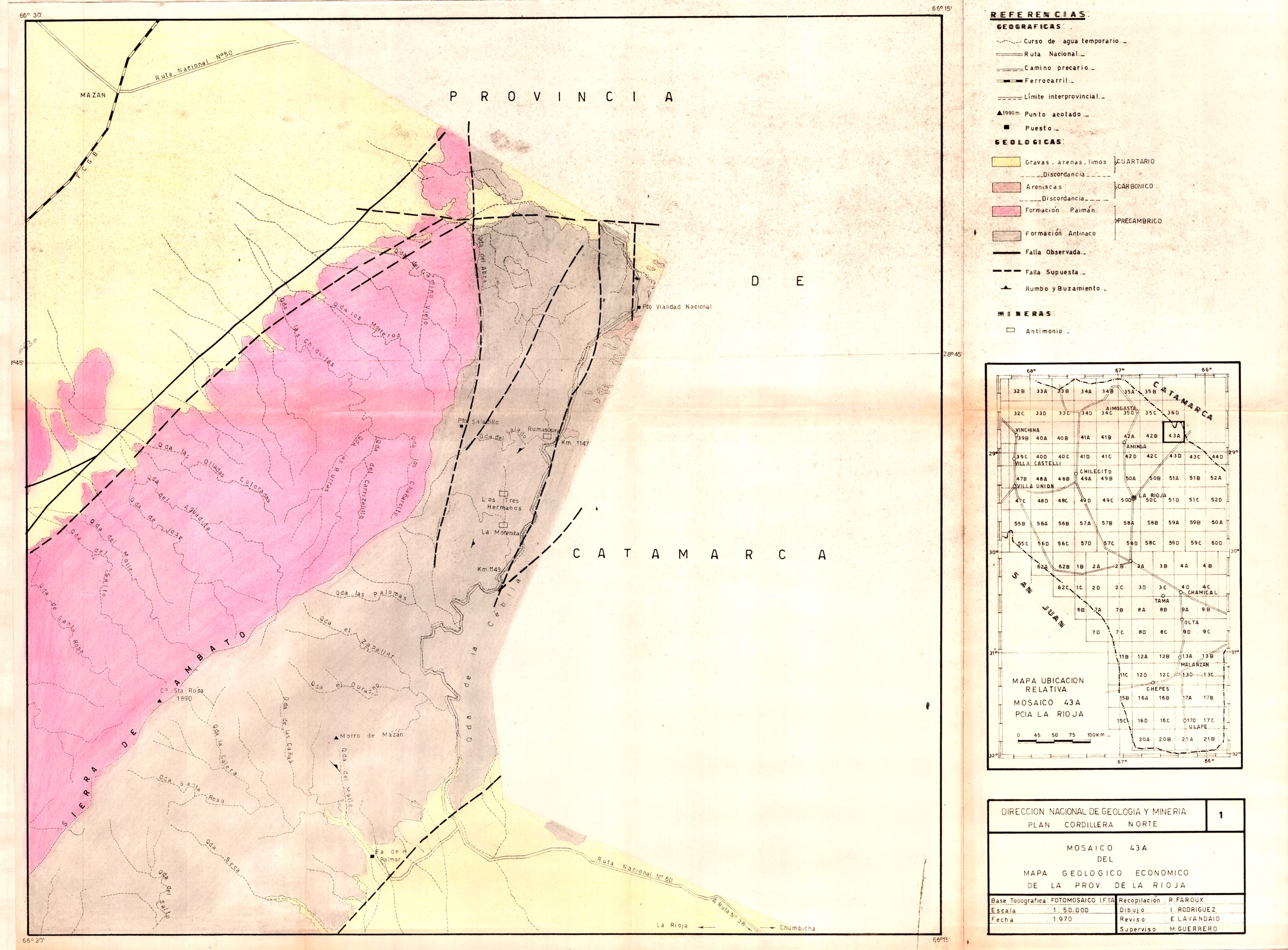 Argentina. Dirección Nacional de Geología y Minería. Plan La Rioja, 1970. Descripción del Mosaico 43A del Mapa Geológico Económico de la Provincia de La Rioja. La Rioja, Dirección Nacional de Geología y Minería. Plan La Rioja (ex Delegación Plan Cordillera Norte)
