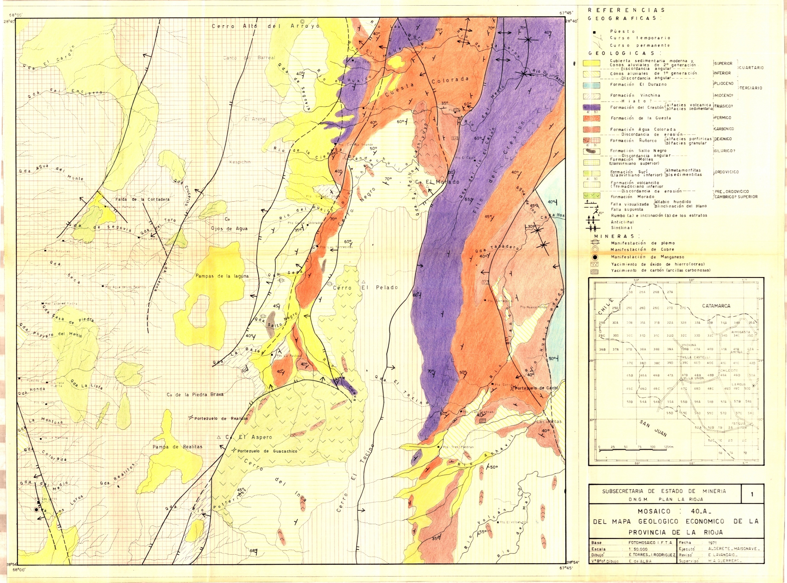 Argentina. Dirección Nacional de Geología y Minería. Plan Cordillera Norte. 1970. Descripción de los Mosaicos 40A del mapa geológico económico de la provincia de La Rioja. 58 pp. La Rioja, Secretaría de Estado de Geología y Minería. Plan Cordillera Norte