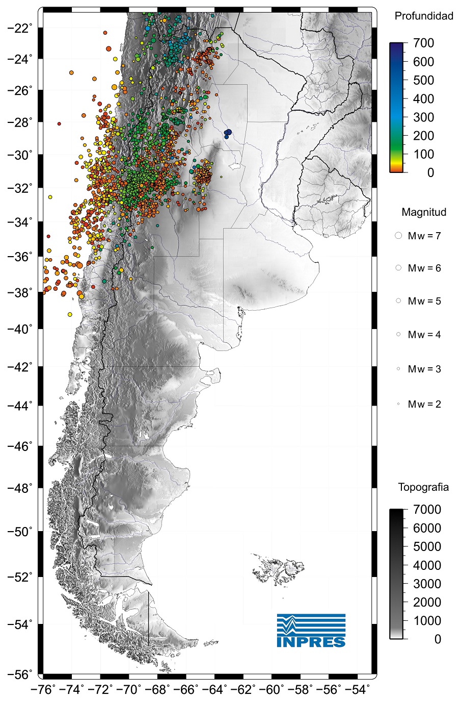 Instituto Nacional de Prevención Sísmica. 2016. Sismicidad de la República Argentina. 1 mapa. San Juan, Secretaría de Obras Públicas. Instituto Nacional de Prevención Sísmica.