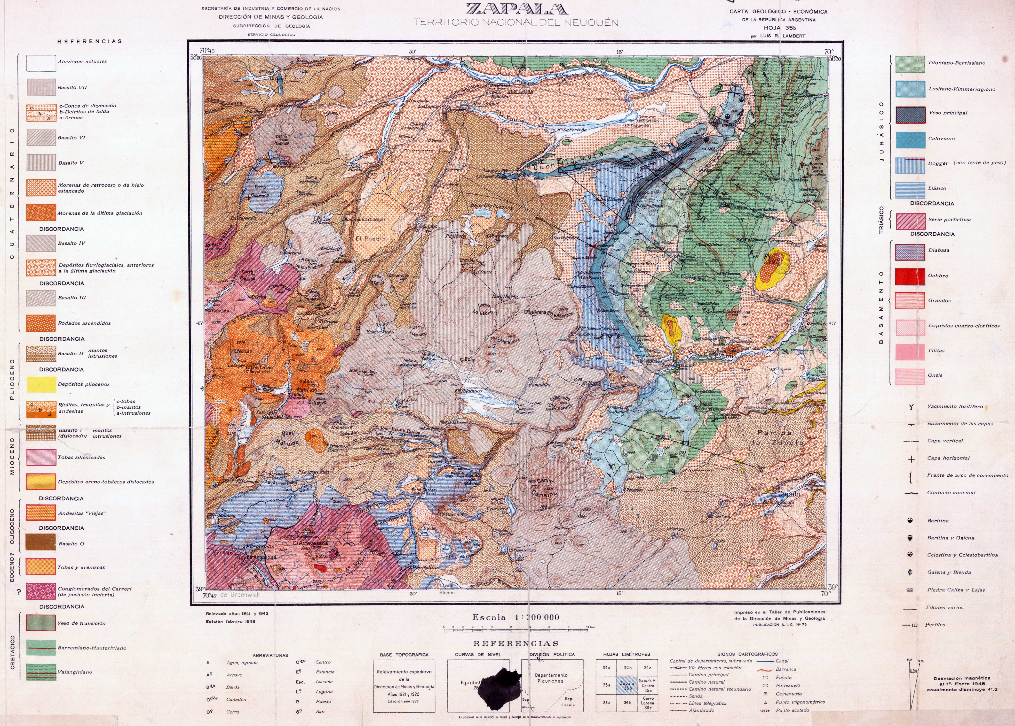 LAMBERT, L.R., 1956. Descripción Geológica de la Hoja 35 b, Zapala. Carta Geológico-Económica de la República Argentina. Escala 1:200.000. Territorio Nacional del Neuquén. Boletín 83, M.I.N. 75, 101 p. Buenos Aires, Dirección Nacional de Minería